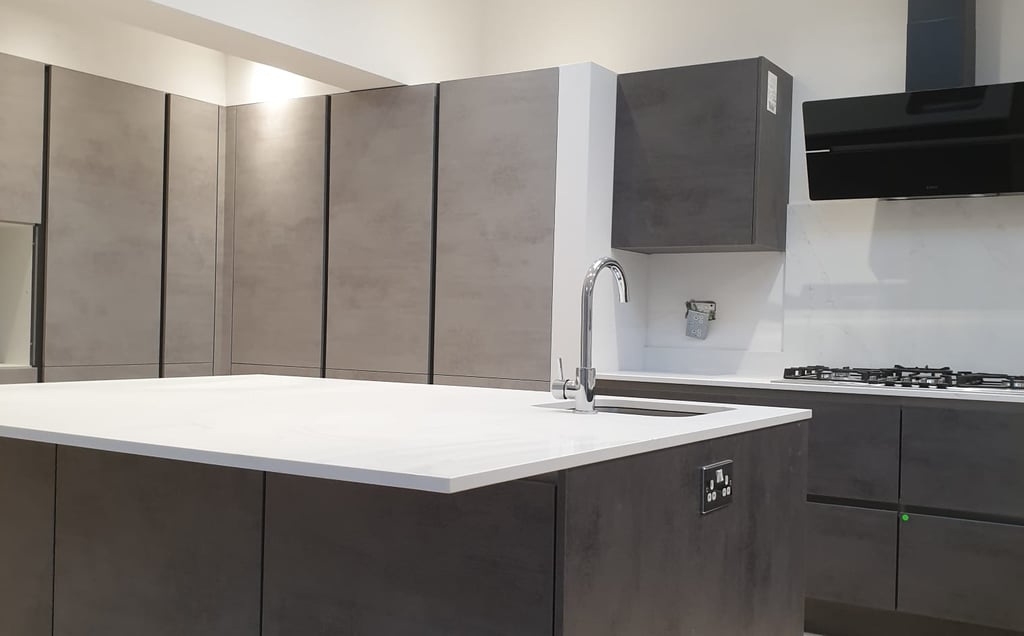 Your worktop choice has a huge impact on both aesthetics and budget. Laminate worktops are the most affordable option, starting around £200-£500 for an average kitchen. They've come a long way in recent years, with some convincing wood and stone effects available. However, they're not as durable or heat-resistant as other options.